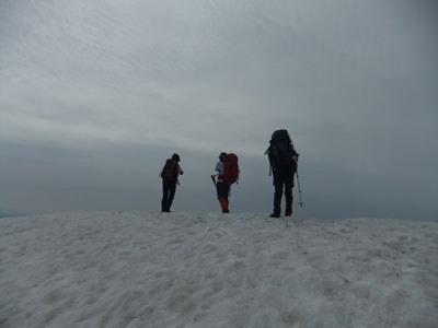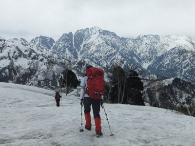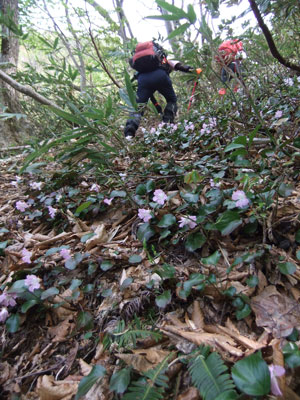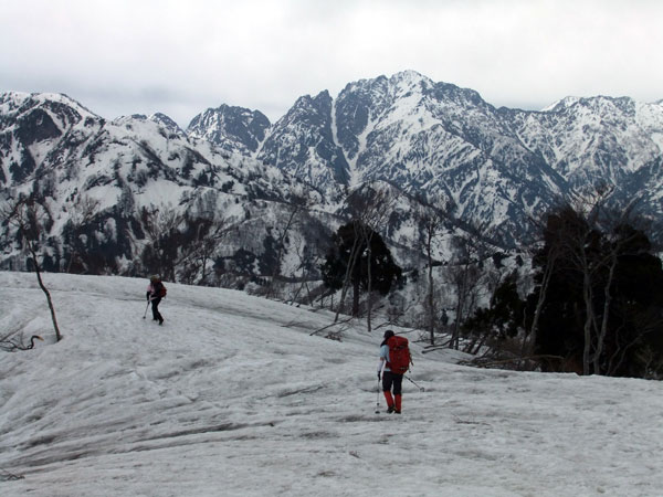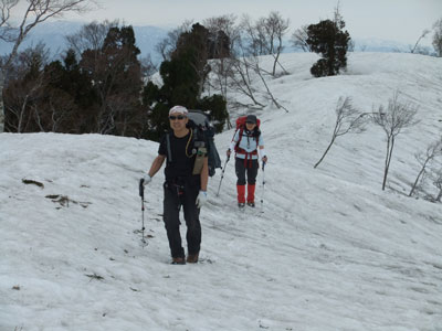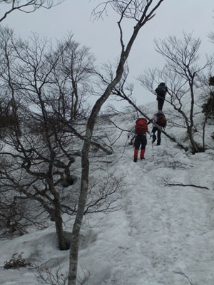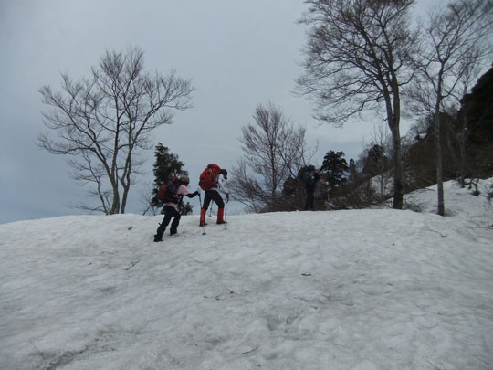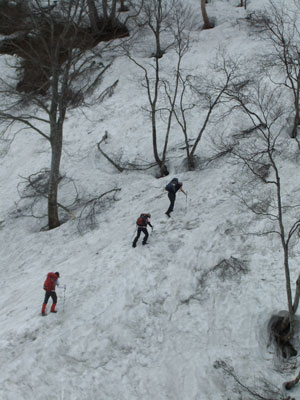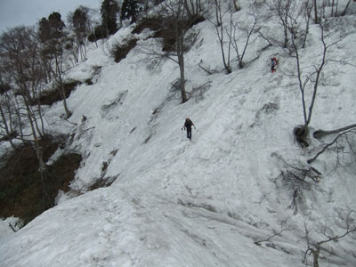 山頂より急斜面を一気に降りる。