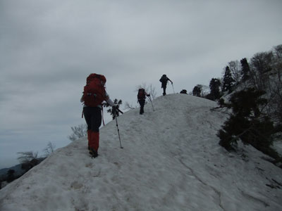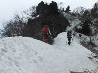 1350m付近の細尾根を行く。