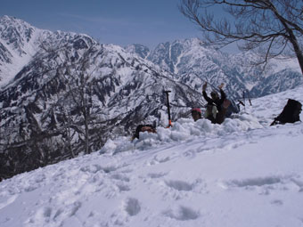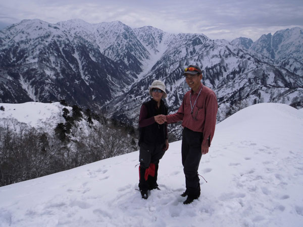 | 猫又谷をバックに・・・ | 逆光になってしまったが、金沢HCの皆さんと・・ |