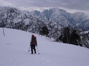 | 1,000mの稜線に出れば富山湾が望める。 | 今日は、壺足でも大丈夫! |