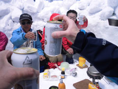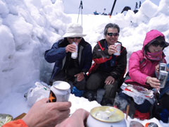 でも、その煽りを食ったのが私で、次から次へと出て来るご馳走に、欲張り、いや、食に飢えているからか、お腹を壊してしまった。そのような事を除けば、頗る順調で、長い林道歩きでさえ、日頃ご無沙汰の解消かのように話が弾んでいたように思う。剱岳のてっぺんが、山頂から眺められなかったのが、ちょっぴり残念であったかもしれないね!