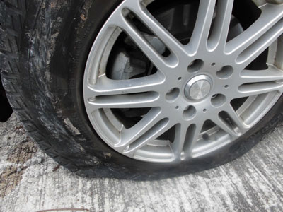 3/28 3週間前の桑首林道は、倒木が道を塞いでいたため、入口から歩いたが、それが、荒削りとは言え処理されていたので、車を進入させた。しかし、林道交差点に近付いた頃になって、異常音に気付き車を止めたが左前輪がバーストしていてビックリ。その後は、スペアタイヤ装着に手間取ってしまった。(ねじ穴が損傷したから・・)