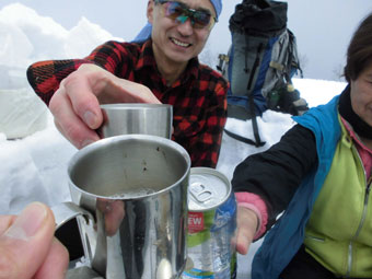 3パーティー4人の人達と出会ったが、そんな事に構わず、稜線に出て、コーヒータイムとした。この頃は、まだ展望も良く、山頂近くから、ガスに覆われるとは思いも着かなかったのであるが、「山の天気と、○○は、移り気」 が、まともになった感があった。