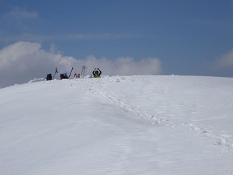 山頂の広い雪原に出ました。いっぺんに景色が変わります。