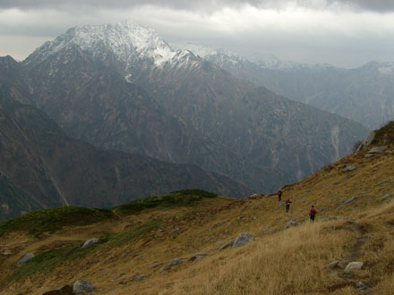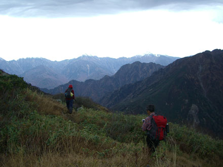 | 鹿島槍ヶ岳・五龍岳を眺めながら・・・ |