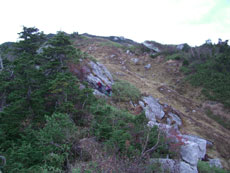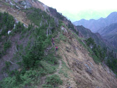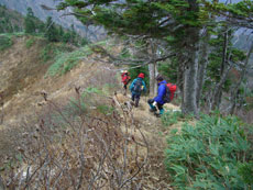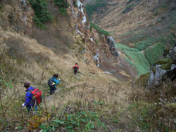 ブナクラ峠からガラ場を降る。 |