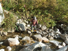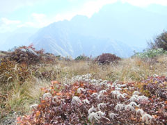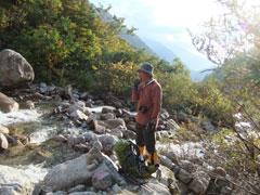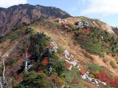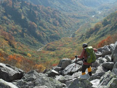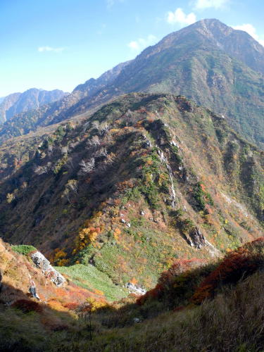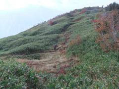 どれだけいても飽きる事のない猫又山頂周辺に別れを告げ、ブナクラ峠への降りとなったが、段々となる急降下に、以前から不安視していた右膝がダウンとなる。周さんに迷惑を掛けたが、ブナクラ谷の歩きは何とかなり、明るい内に車へ到達する事が出来た。