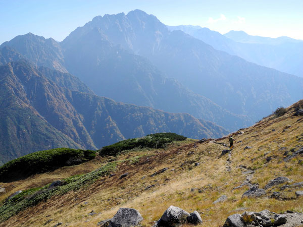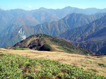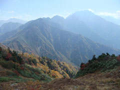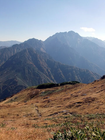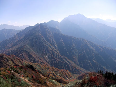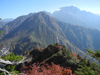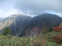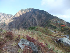 | 剱岳の前の赤谷山が存在感を表わして来る。 |
