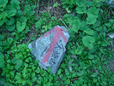 | 三角点の残骸なのか分からないが石柱が横たわっていた。 | 猫又谷側を望み込む。 |