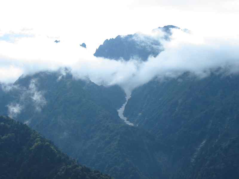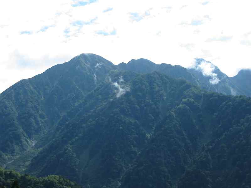 後から撮れば良いと思って、その通りになった事が殆どない。今日もこれが最後だと思ってシャッターを切った。元々、計画していた山行を中止にして、やって来た山だから、そんなにも展望を期待していたわけでもないのだが、人間とは欲張りなもので、少し良いとまたその上を望む。大猫平の展望と比べれば、高度も違うし、周りの樹木のあるないが違う。速足ならば、1時間前後で来れる標高1500㍍地点だが、ヨタヨタになった下りでは、この地点から登山口まで、転んだり滑ったりして結構辛いのである。 ( 大猫平や頂上からと、少し角度が違うが、魚津市から見るような剱の形である。 )