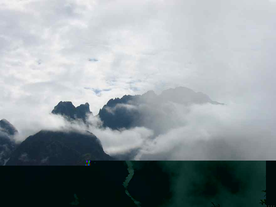 ■ 下山時の一瞬のガスの切れ間をついてシャッターを切った。大猫山は大猫平まで、標高1400㍍と標高1500㍍付近以外に、休息として適した場所がない。 また、急登につぐ急登だけに大猫平に着くと、誰でもが、その風衝草原の光景に感嘆の声を上げる。 夏は、チングルマやハクサンコザクラの群落に遭遇して、また秋は萌えるような草紅葉を目の当たりにする事になる。 後立山連峰の鹿島槍ヶ岳や五竜岳の勇壮な山並を、北アルプスの重鎮「剱岳」の脇役として見るかどうかは、その人その人の感じ方次第であろう。☆☆☆ ( 山頂を後にした帰路、ガスの切れ間から大猫平を撮る。)