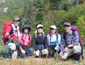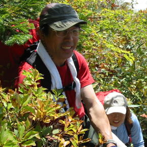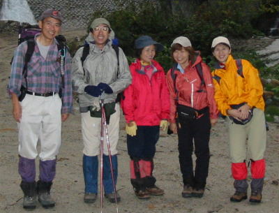 取水口駐車場で、おなじみの辰口氏に出会う。今日も赤谷山だそうだ!赤谷山100回登頂まであと11~12回だったと思う。凄い記録である。福井の客人達に、辰口氏と一緒にカメラに納まる事を勧めた。彼も快く承諾してくれて、私がシャッターを切った。