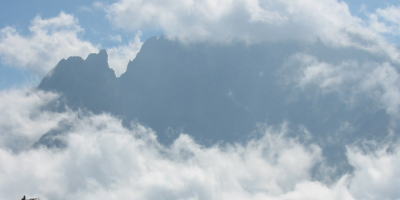 「わーっ」と歓声が上がったと思えば、またガスの中に消えるといった具合。大窓・小窓・三ノ窓がくっきりと北方稜線の凹凸を強調しているが、肝心の本峰が姿を現さないのである。