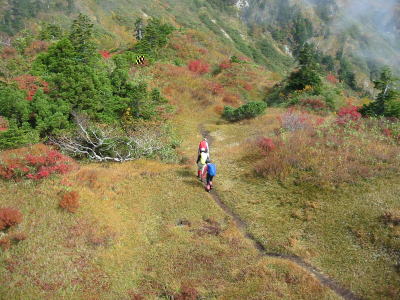 やがて大猫平に出る。紅葉はイマイチであるが、草紅葉もまあ~何とかである。