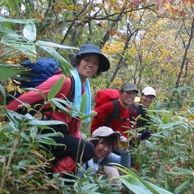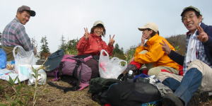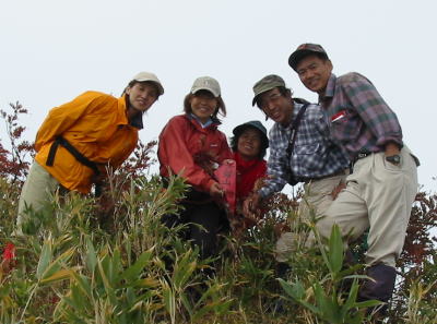 標高2050~60mくらいの2070mの山頂まであと5~6分の所で、男性3人で三角点を探しに行く事になり、女性軍は先に山頂を極めてもらう事にした。