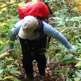 山頂までの標高差200mは結構厳しいのである。特に草地の急登・トラバースはしっかり草木を掴まないといけない。(下山時は尚更辛い。)