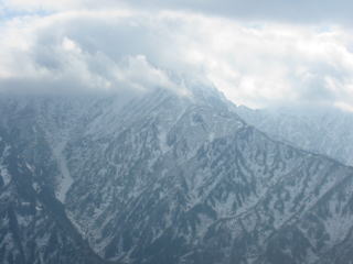 瞬く間に暗雲が立ち込めて、何も見えなくなってしまった。そして雪が降って来た。「やっぱり今日はここで止めておこう。」大猫山と私の相性は本当に悪く、11回も通い続けているのに、まともに見えたのは、1回だけである。 ブナクラ取水口からの標高差は、1100mくらいで、時間にすれば4時間前後で、この凄い迫力を見る事が出来るのだから、何度も通い続けなければならない。5月に、猫又谷から直接大猫山に登った事があるが、この時も素晴らしかった。鬼場倉ノ頭からも、時間を惜しんでシャッターを切ったのもよく覚えている。