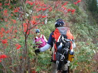 今年は今一つの紅葉は、1500m付近までであって、落葉した樹木が頭だけの剱岳を遠望させてくれ、1750m付近から笹の下に昨日来の降雪の名残を見せてくれた。