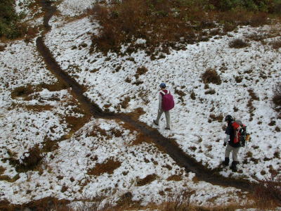 やがて雪上を歩くにしたがって、「山頂では雪だるまを作ろう!」などと、初雪はいっぺんに童心へタイムスリップさせてくれるような気がした。