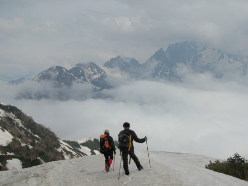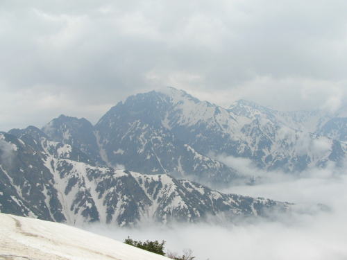 すっきりとはしなかったお天気ではあったが、雲上にある「それなりの剱岳」を、ずーっと楽しむ事が出来、幾度も立ち止まってシャッターを押した。大明神山・釜谷山・猫又山も、私にとっては全部ステキに思えたのである。