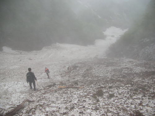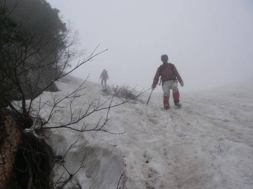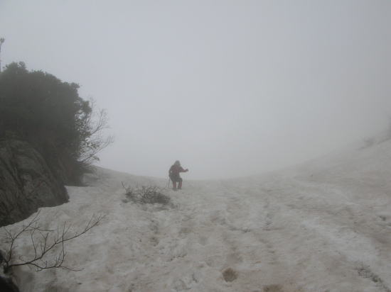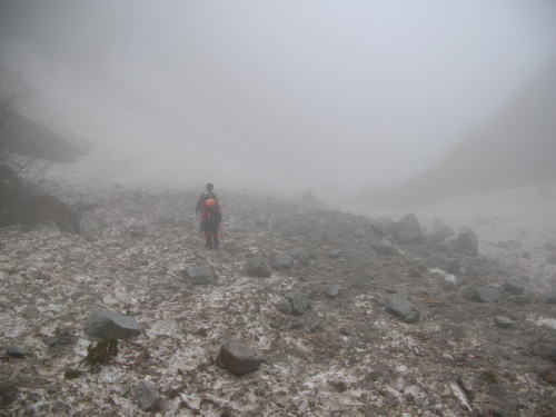 | ガスの中、大ブナクラ谷を下るⅡ |