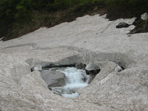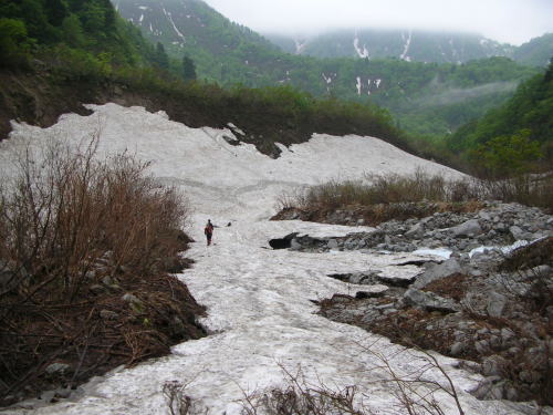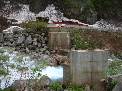 | 今春は残雪が多く、未だ橋は架けられていなかった |