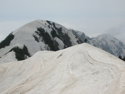 しかし、名剣沢の傾斜を経験した者として、それほどとも思えなかったのであるが、この登りを、ストックだけで、しかも短時間で、登って来た長勢君に敬意を称したい。