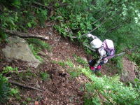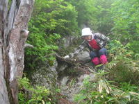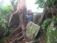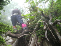 | 急登に次ぐ急登 | 1500P下の一枚岩を下る | イヤな感じ・・ | 「大ねっこ山」の様相 |