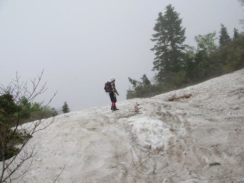 | 残雪が多い大猫平で |