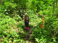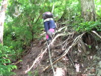 | この↑から始まります | 登山口で | ロープもある急登 | ちょっと一息 |
