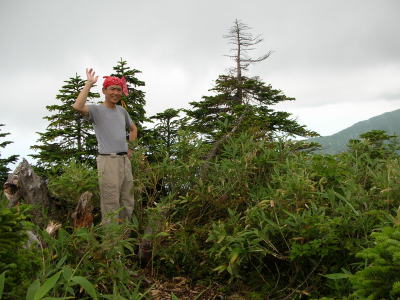 | 大猫山頂上で | ガスで見えないが、大猫山から猫又山方面へ |