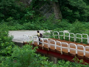 | 足が、ガクガクになって登山口に戻る | 鉄橋を渡る | 30~40分の林道歩きは、そう気にならない |