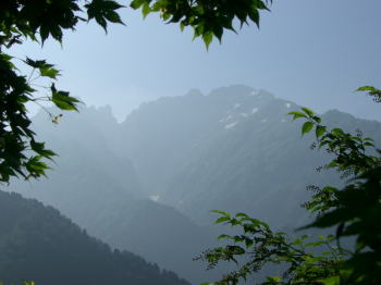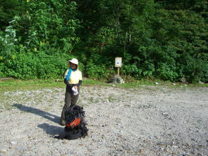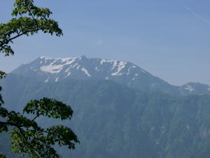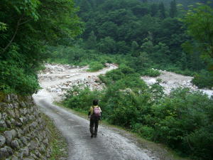 | 馬場島からブナクラ取水口までの林道歩き | ブナクラ取水口駐車場が登山口 | 登り始めると、すぐに大日岳が見えて来る |