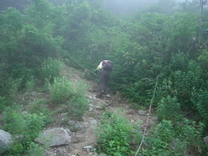 | 「山ノ神」は、大猫平で待機。独りだけの山頂となる | 登頂後、大猫平で・・・ |