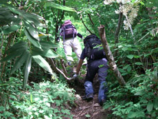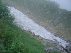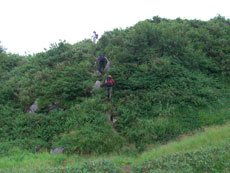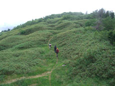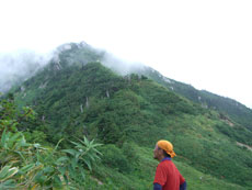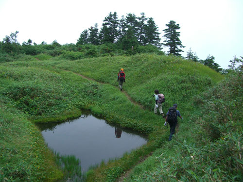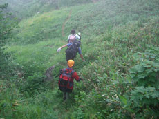 食事場所から35~40分、標高にして2,200m地点位まで歩いたのであるが、その先もず~っと、延びていた。もしかしたら、猫又山頂まで届いているのかもしれないと思ったくらいである。何人もの方々が、ブナクラから、或いはブナクラへ、周遊しておられる話を聞いているから、それに近いものだと思う。