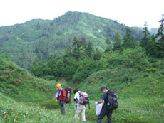 橋ちゃんとの山行は、5/28の寺地山・北ノ俣岳以来、田村さんとは、6/17~18の朝日岳以来であった。「それでも、そんなに、会っていない気はしないね。」 などと、久しぶりの再会に、しっかり握手を交わし、大猫山の登りは始まった。