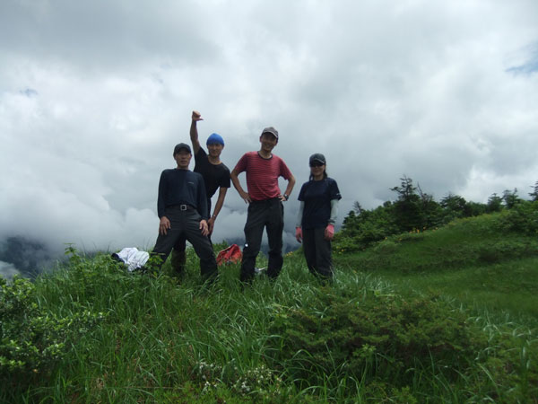 8/5 紆余曲折があったが、大猫山に出掛けた。私を入れて、好山病メンバー4名であったが、久し振りであっただけに、会う事だけでも嬉しかった。怪しいお天気に、メンバーの志気は上がらなかったが、「もうちょっと・・・」 と言い続けて大猫平まで登り詰めた。