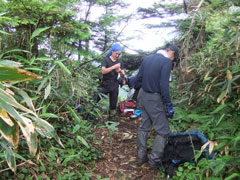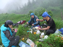 今回、遠方よりお越しの3パーティーと遭遇したが、口々に「イヤハヤ・・・」 の言葉が聞かれた。イマイチのお天気に、急登につぐ急登で、展望がないとくれば、「何でこのような山に来たのか・・」 となるが、剱岳や北方稜線の響きと共に、大展望を期待しての山行であれば、またの挑戦になる事であろう。