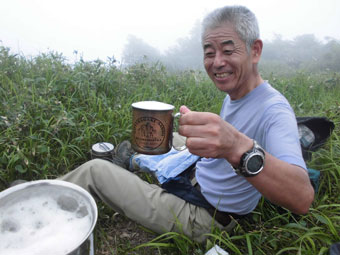 | 大猫平で大休憩。 藤井氏が、いっぺんに元気を取り戻された。 |