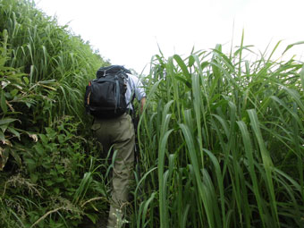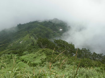 | 時には、刈ってない登山道もある。 | 大猫平を見下ろす。 |