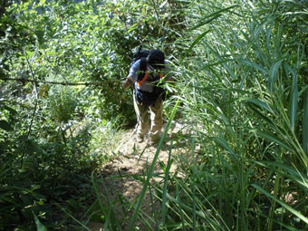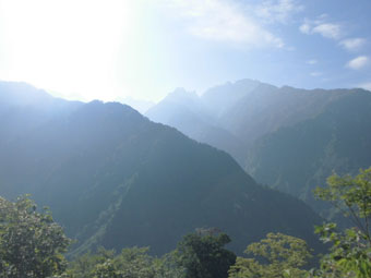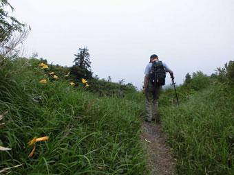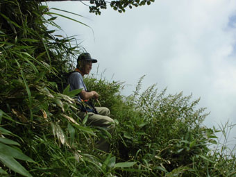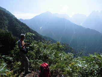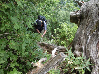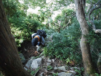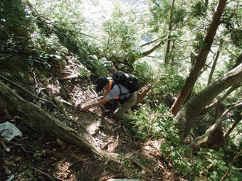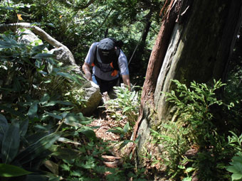 | 始めの内は、山々を眺められたのだが・・ | 時折、ロープを頼りにしなければ・・ |