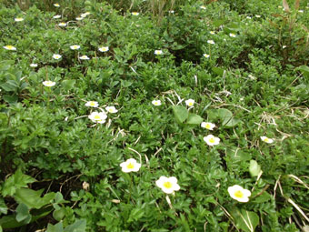 | 大猫平を見下ろすのに、ちょっと休憩。 | ハクサンコザクラの名残。 |