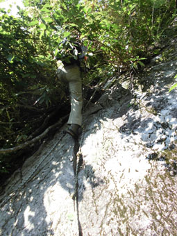 | 1500mポイント下の一枚岩を通過。 | 別称 「大根っこ山」と呼んでいる。 |