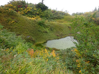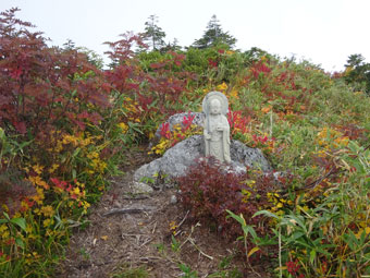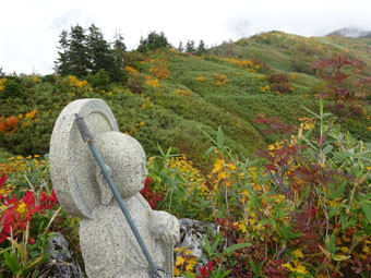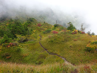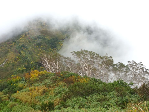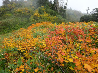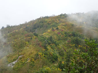 | やっぱり、山頂から剱岳は望めませんでした。 | かなり色付いて来ていました。 |
