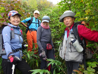 | 大猫平を見下ろす。 | 山頂に向かう途中、下山して来る宮ちゃんパーティ ーと遭遇。今春、大地・初雪山でお世話になりました。 |
