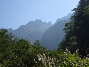 | 1,500のピークで一息つく。 | 1,500mピークから、剱岳を望む。 |