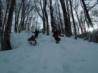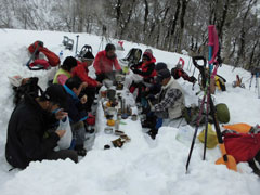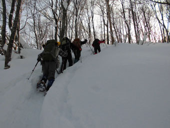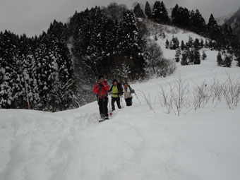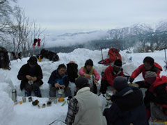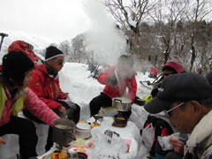 | 幹事・筏井氏の挨拶 | 絹子さんスノーシューの異変に、戸惑ったが・・ |