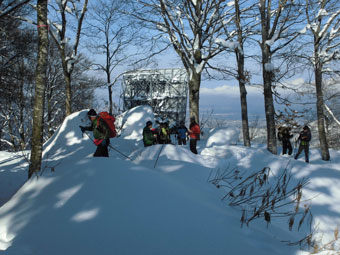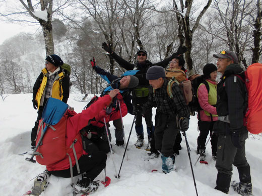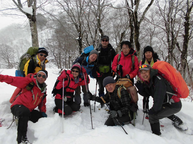 | ハレルヤ1月定例山行参加者9名 (鍬崎山1,429m付近で・・) |