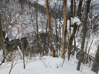 | ベタベタに赤布があったが・・・ | 貯水池に近付くと狭く急になる。 |
