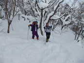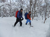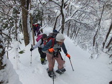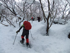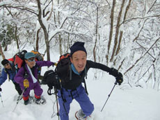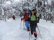 | a.m.9:27 久し振り参加のeiko女史健闘。 | a.m.9:53 イナさんのスノーシューを借りて | a.m.9:53 イナさんは余裕・・ |